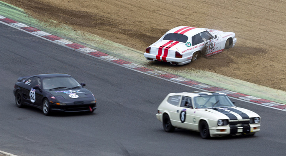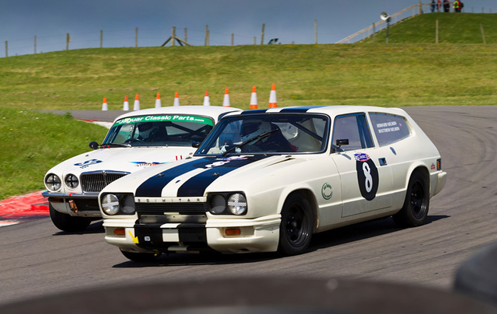 My old man and I turned a (arguably) classic piece of 70's motor engineering into a true track car and took it out racing with the CSCC in their 'Future Classics' series. A 1977 Reliant Scimitar SE6a. Stock with a V6 3.0ltr Ford Essex engine, 4 speed manual gearbox with overdrive, and authentic 70's velour interior, nicotine stains included.