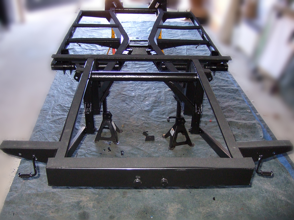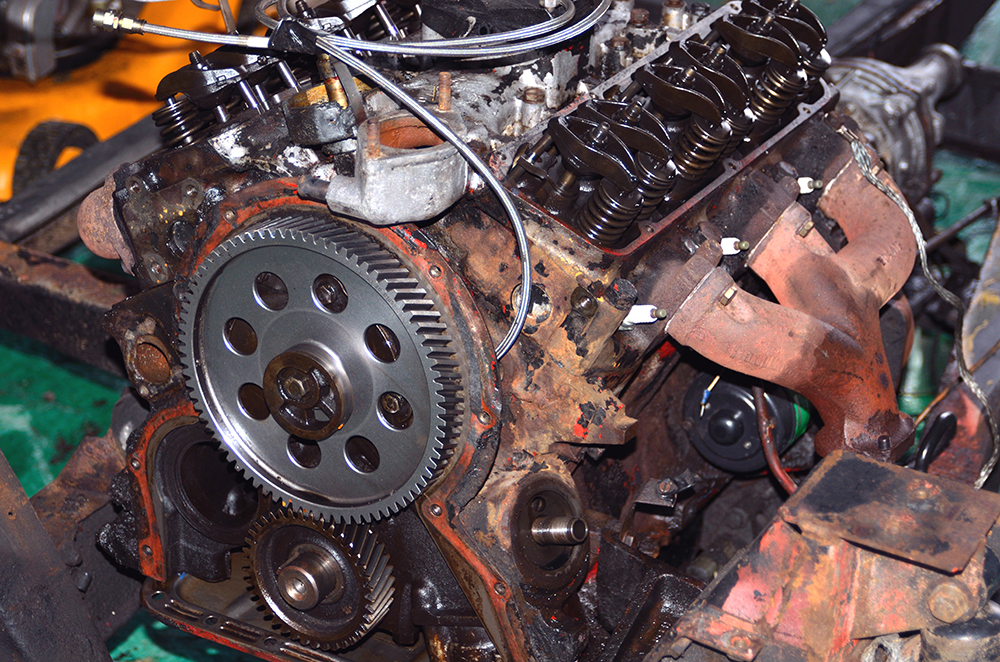 The lot needed to be cleaned, blasted, powder coated and painted. New parts were throw in where needed and most of the proper mechanics were uprated. New suspension, brakes, new carburetor from a Ferrari 365GTC, etc.